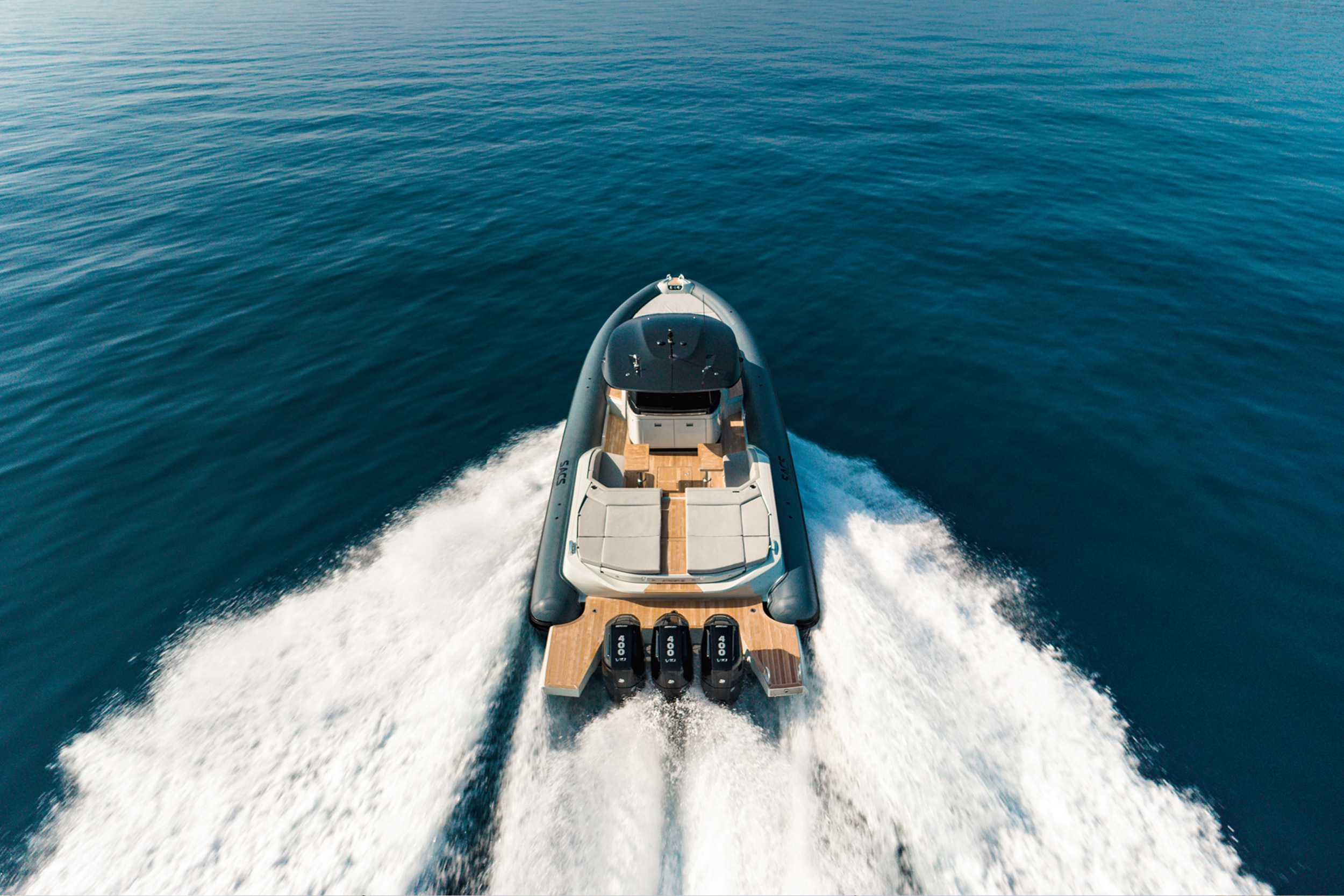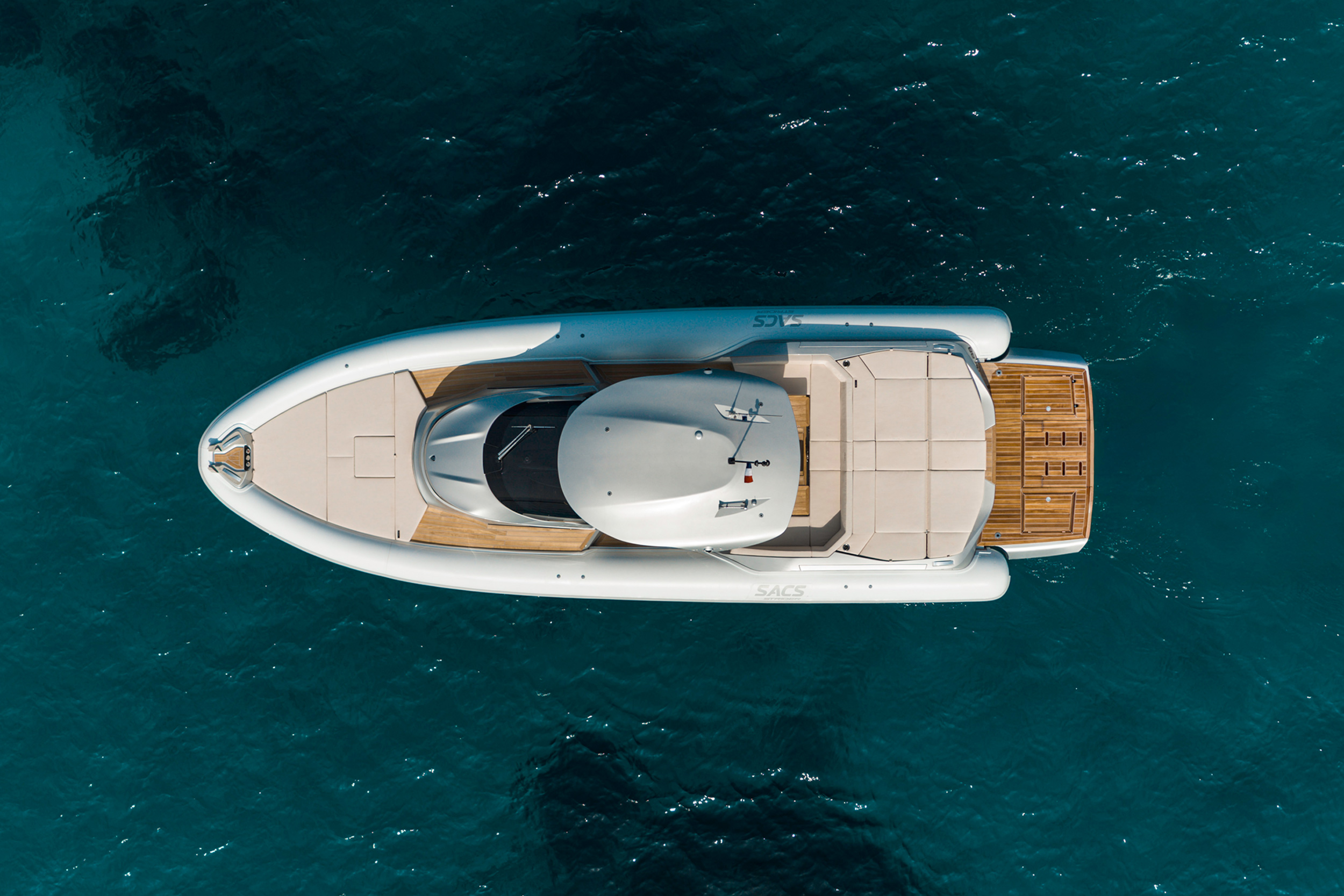 The owner can select the layout and choose the furnishings they prefer to customize the boat for any use, whether as a Maxi Tender, Party Boat, or Luxury Cruiser.